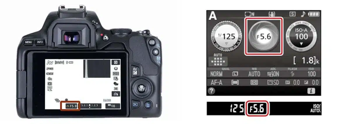 מימין- מספר צמצם בניקון. משמאל- מספר צמצם בקנון