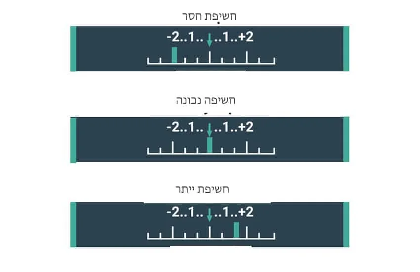 בדוגמה ניתן לראות את האינדיקציה של שלושת סוגי החשיפות- חשיפת יייתר (לכיוון הפלוס), חשיפת חסר (לכיוון המינוס) וחשיפה נכונה (באמצע)
